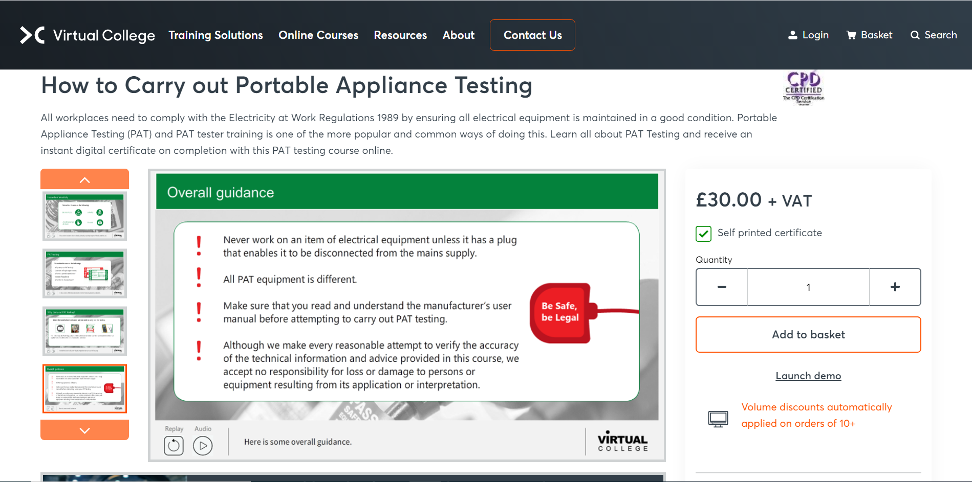 The Virtual College is an online website providing many courses virtually. The training will be user-friendly and can be done at any time. The training will be for 1 hour which includes the PAT testing.