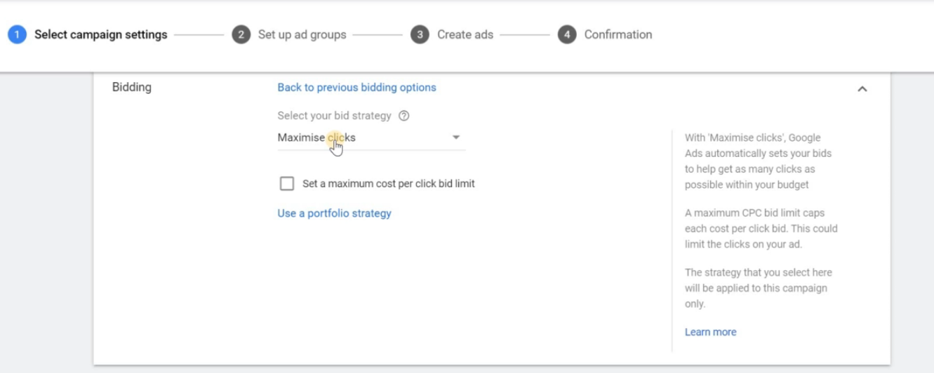 Maximize conversions is the same as that of Maximize clicks, but here your Ad will be focused on the conversion rates. You will have the maximum conversions within a set budget limit for a day. Here you can use the portfolio method, where the maximised conversion can be used for a number of Ad campaigns that are running. This is useful to get a maximum conversion rate, but as a beginner, you do not need to go with the portfolio.