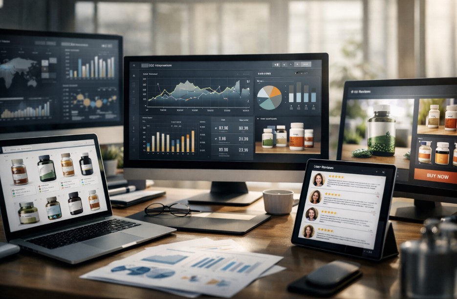 Pharmaceutical marketplaces are defined by how successfully they position themselves in search engines. Users are more likely to enter long-tail keywords, for example, ‘vitamin D3 for teenagers,’ ‘magnesium and calcium complex for stress,’ or ‘multi-component supplements for immunity.’