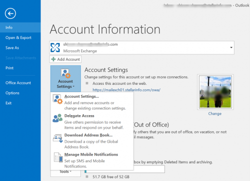 - Start Outlook and go to File > Account Settings > Account Settings.